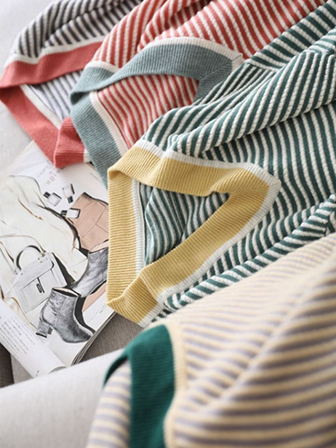 Morgan Casual Color-Blocked Striped Pullover Knitted Top
