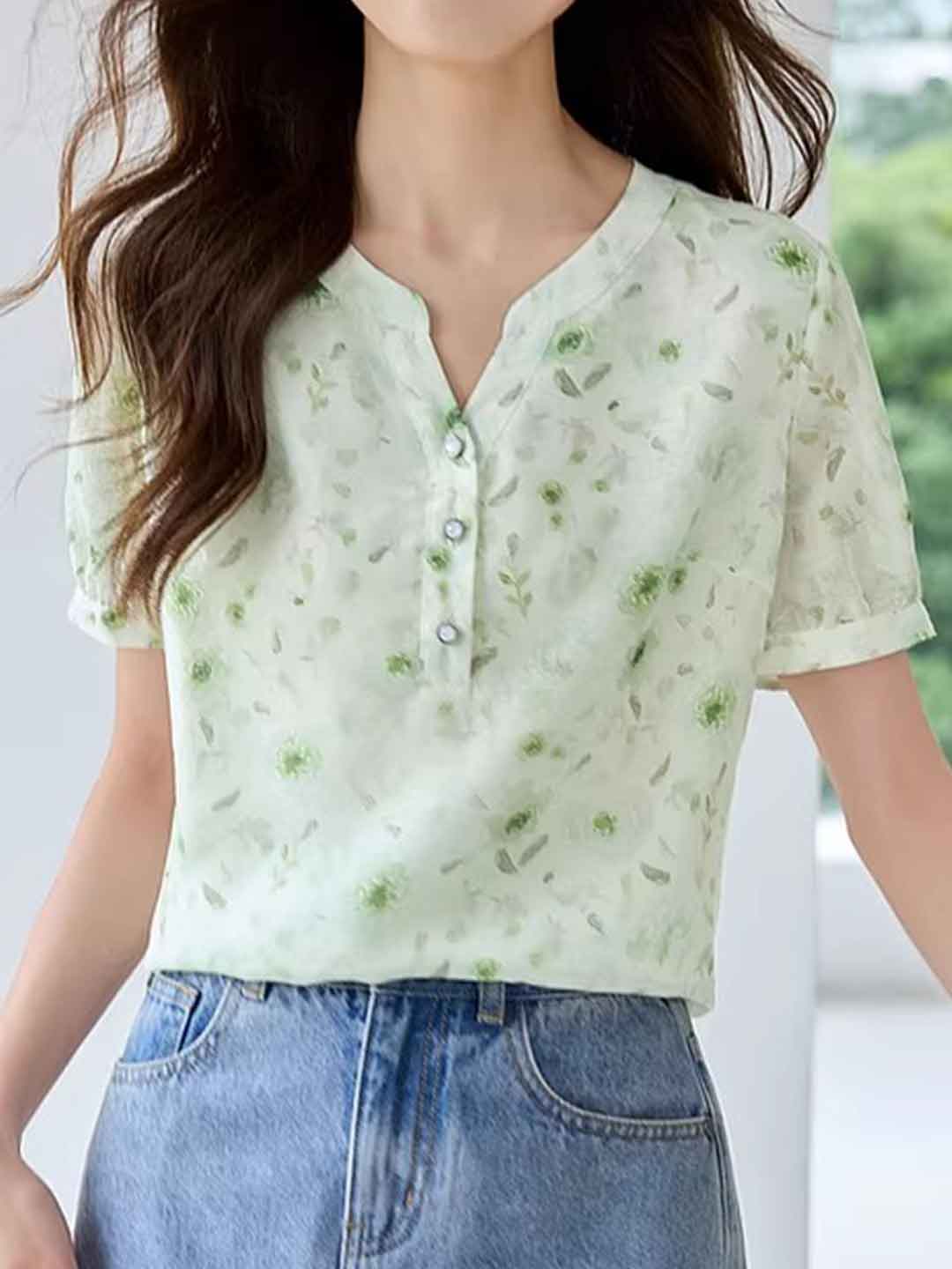 Madison Casual Puff Sleeve Floral Chiffon Blouse