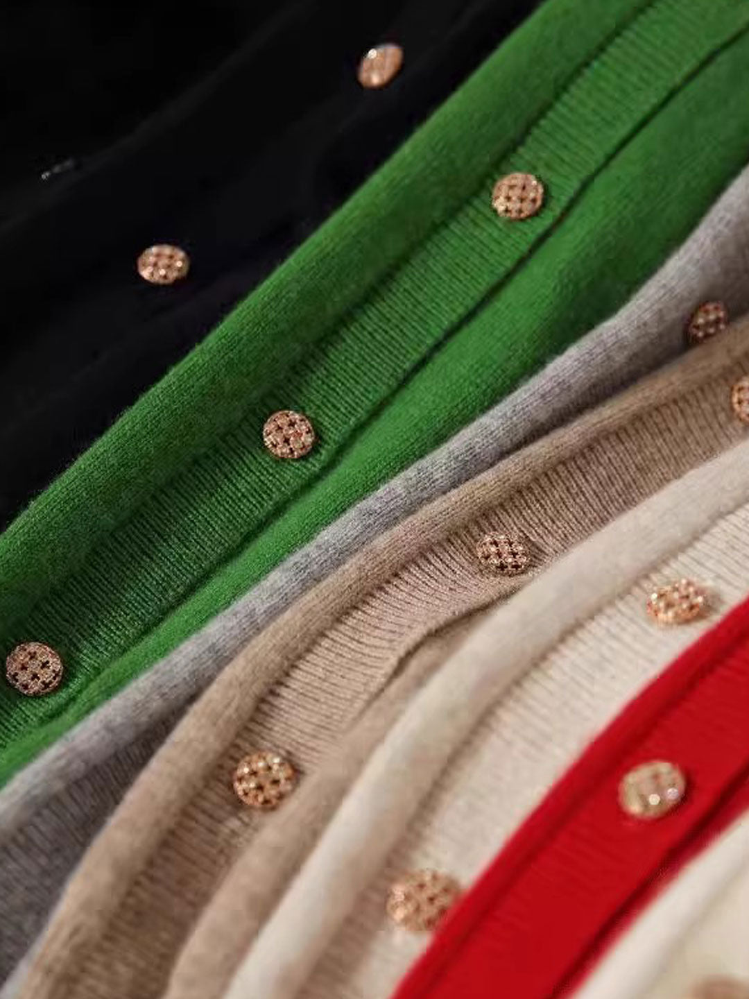 Sophia Classic Crew Neck Solid Color Knitted Cardigan-Red