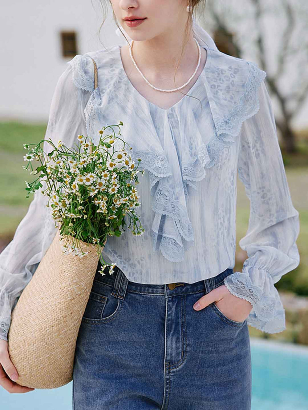 Madelyn Vintage V-Neck Ruffled Lace Blouse