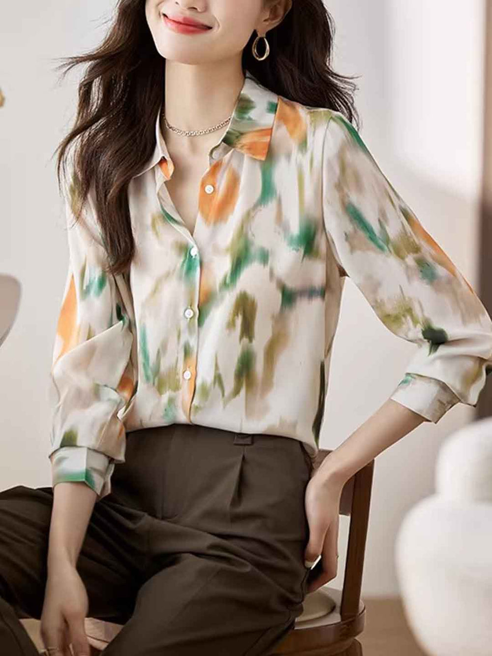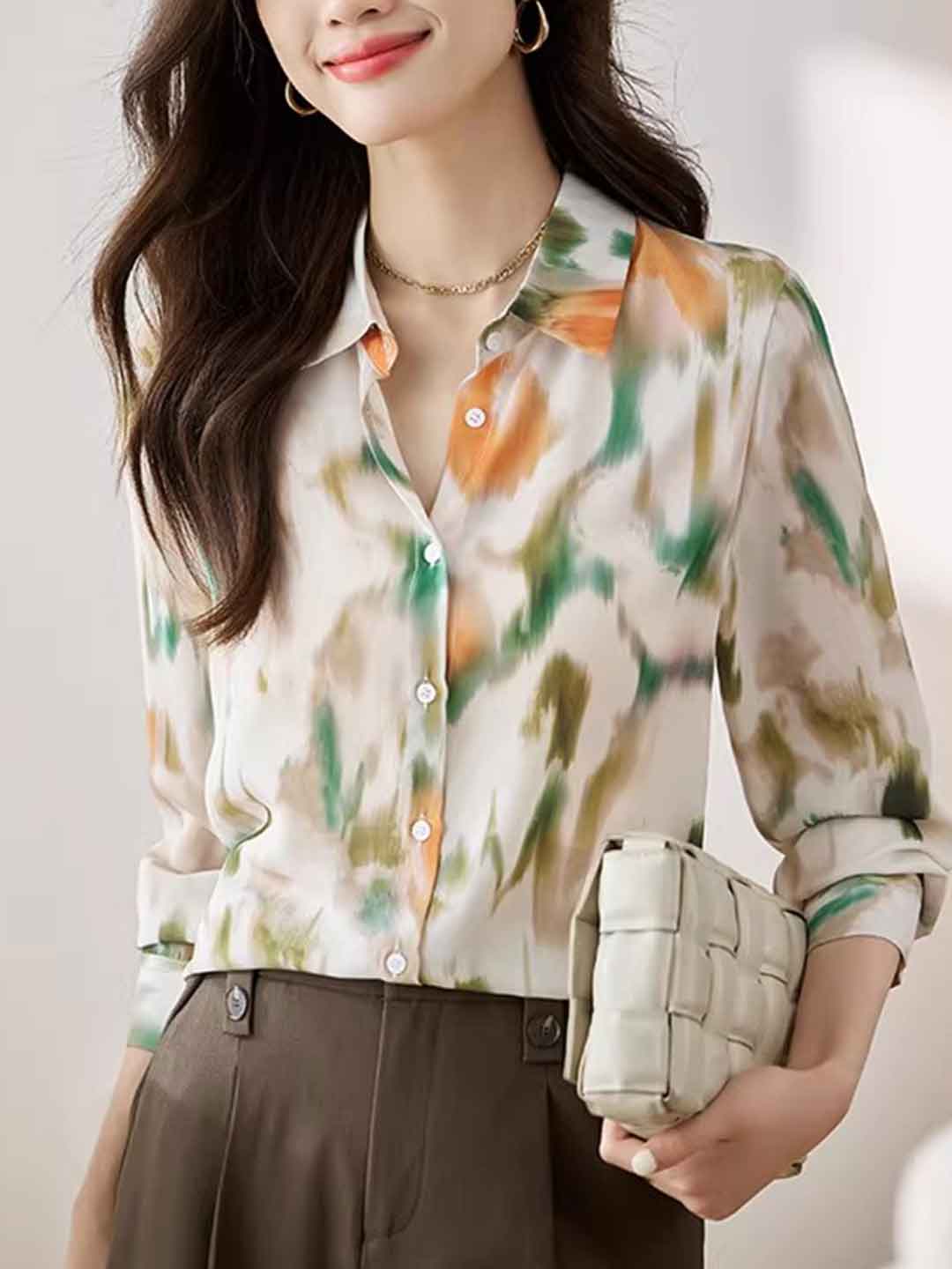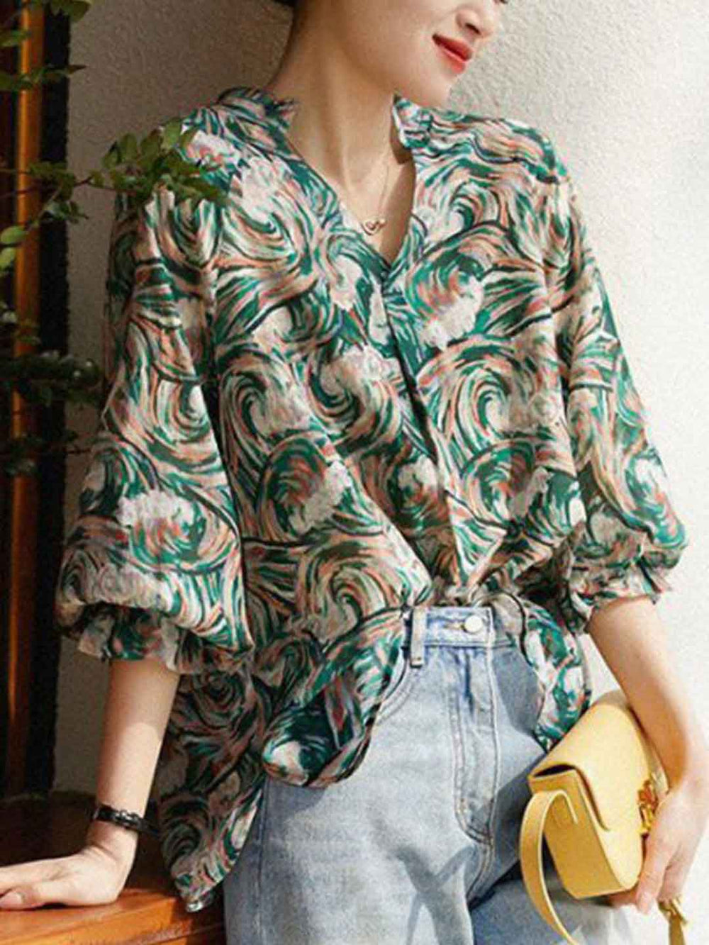 Eva Daily Lapel Colorful Chiffon Shirt