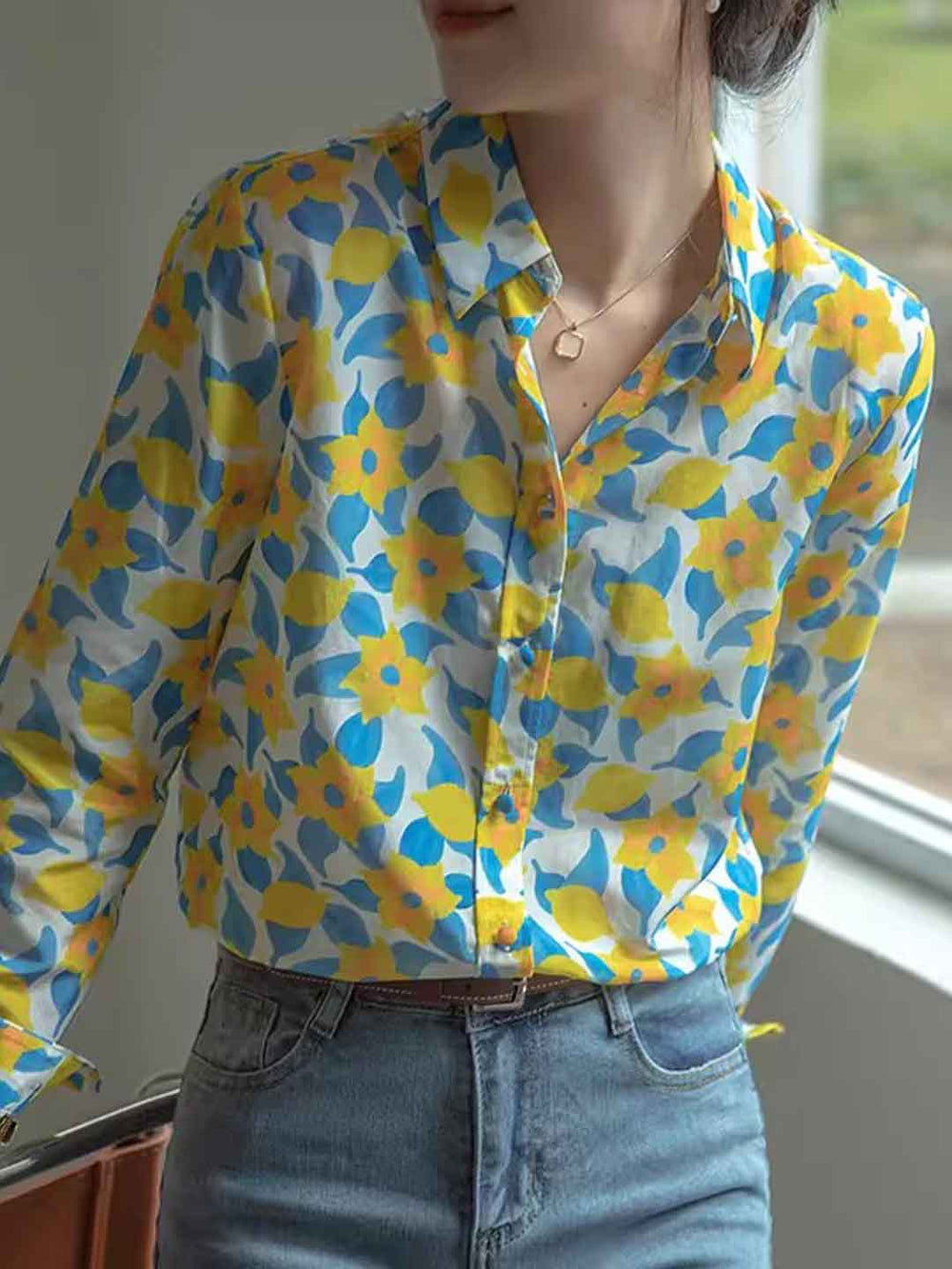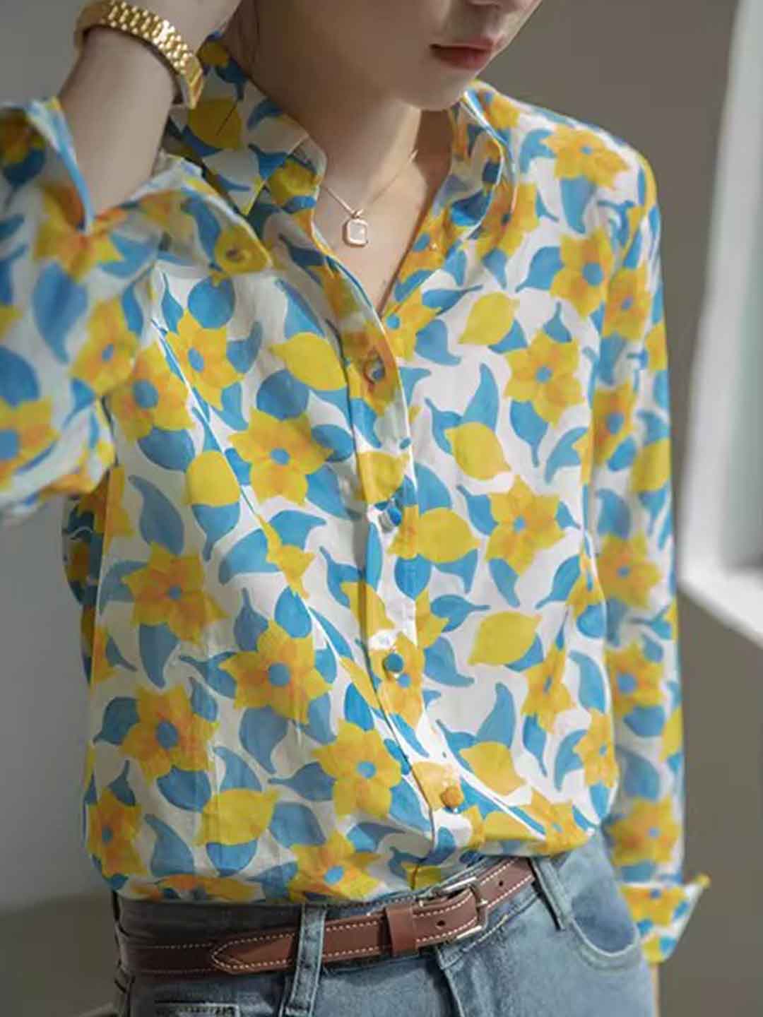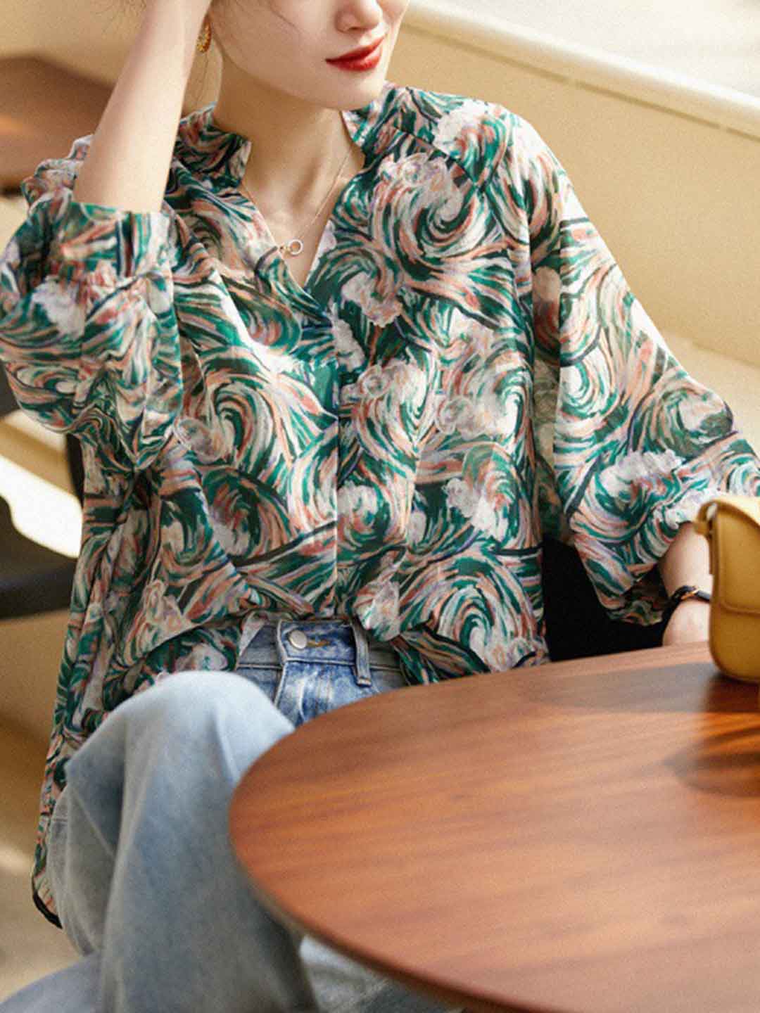 Eva Daily Lapel Colorful Chiffon Shirt