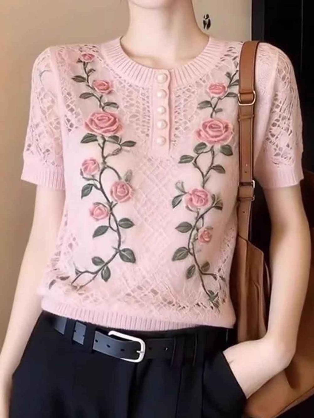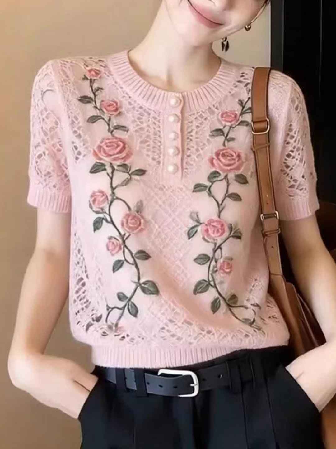 Zoe Elegant Crew Neck Embroidered Blouse