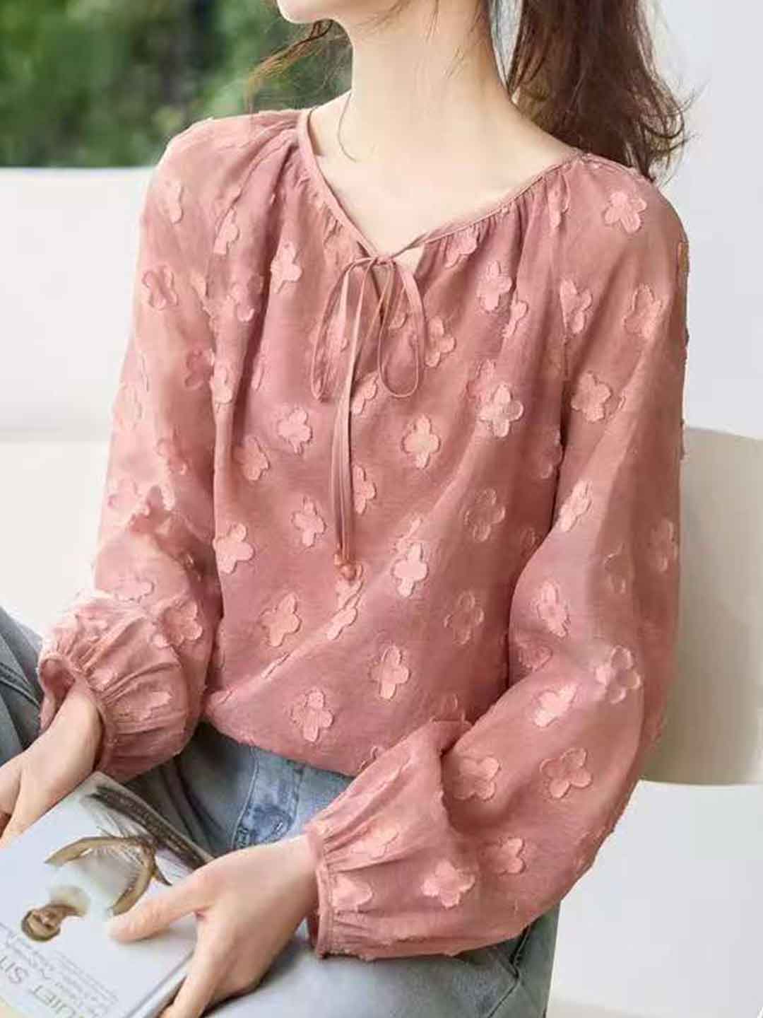 Mariah Spring V-Neck Jacquard Textured Top