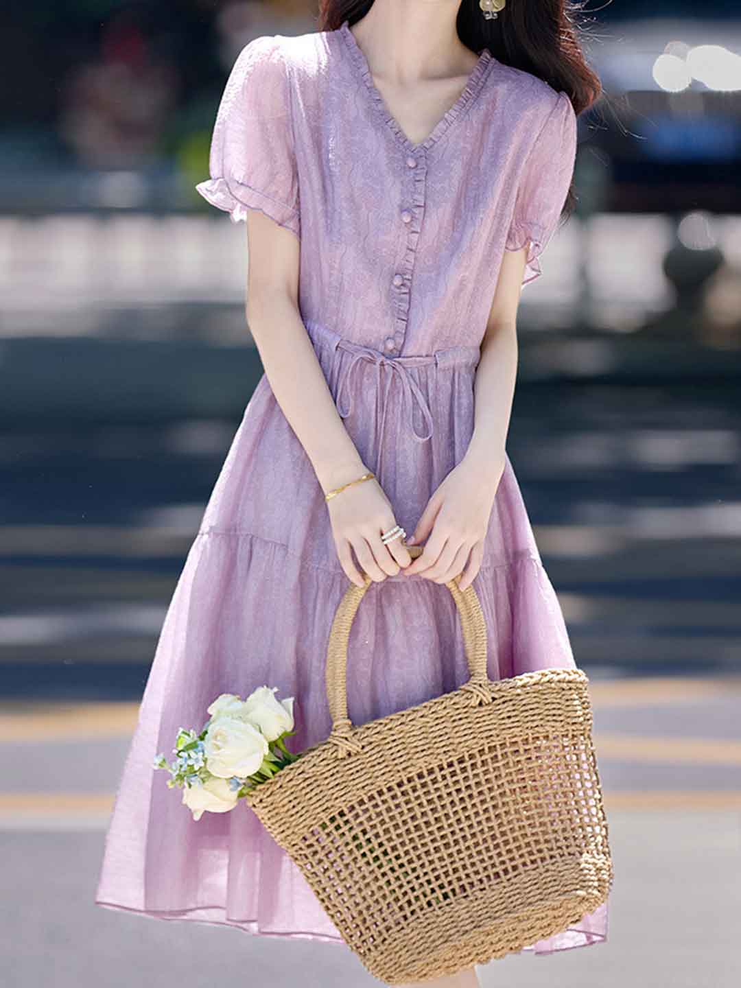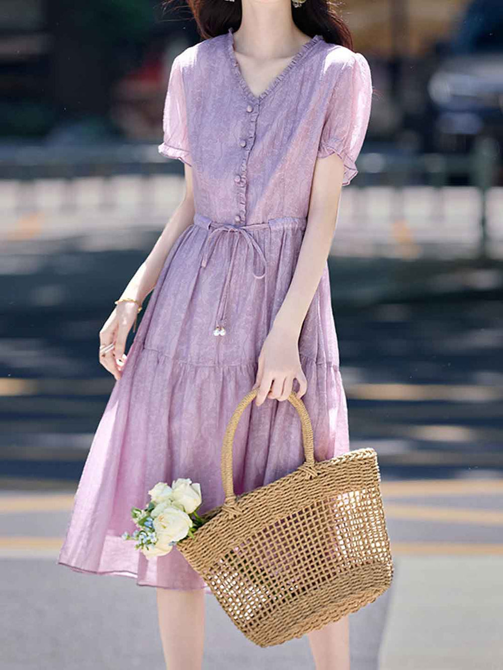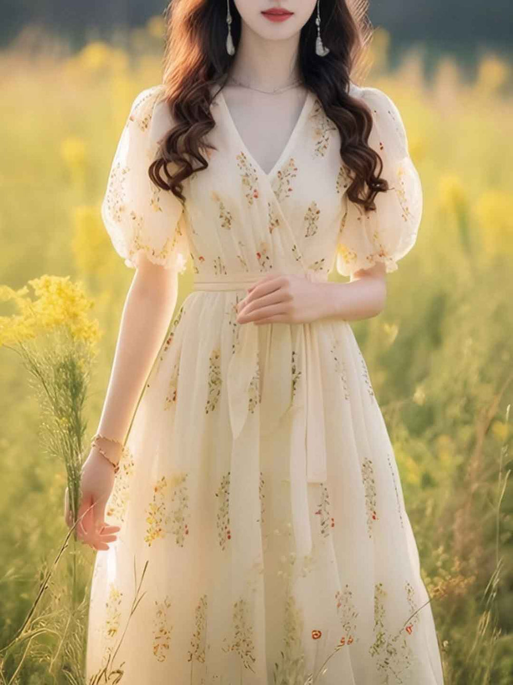 Selina Vacation V-Neck Puff Sleeve Floral Dress