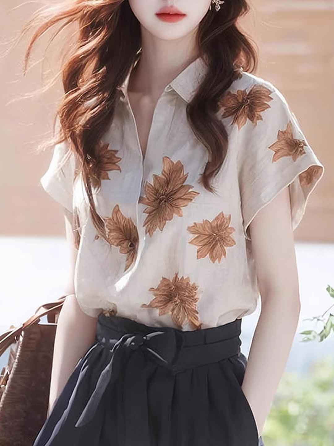 Riley Loose Polo Collar Floral Chiffon Top