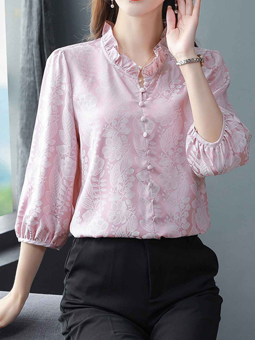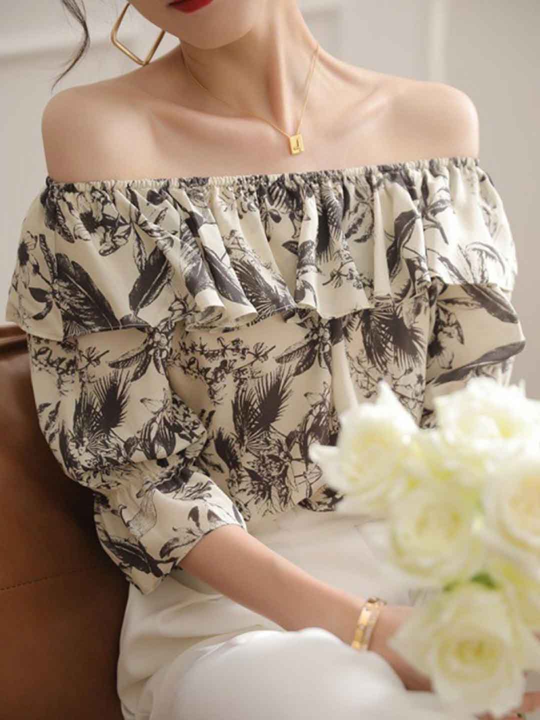 Sophia Loose Ruffled Collar Printed Top