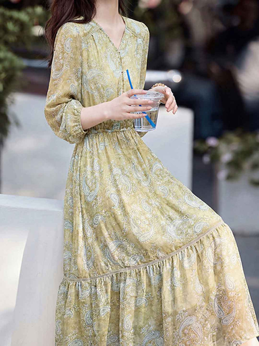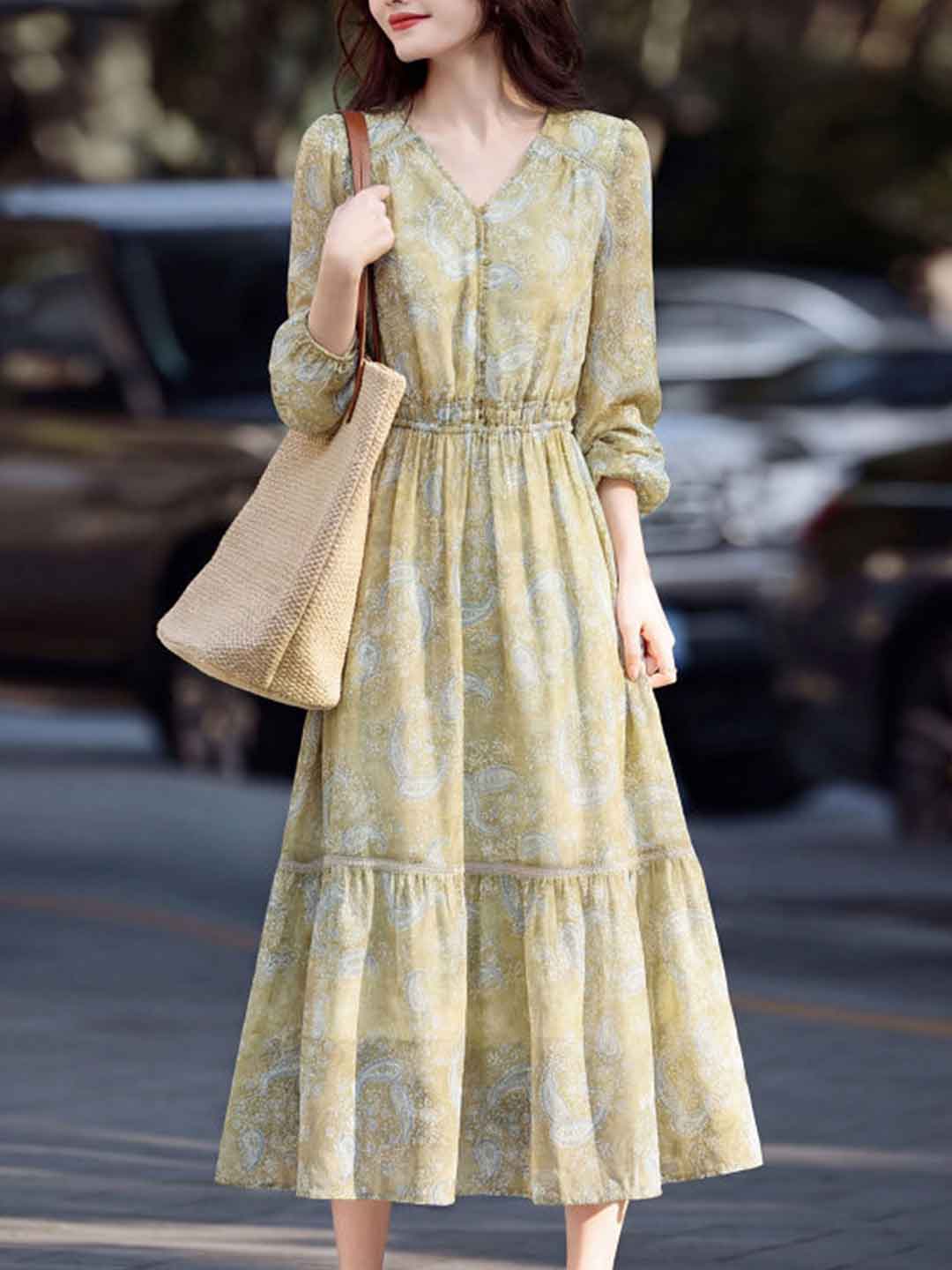 Hailey Elegant V-Neck Printed Dress