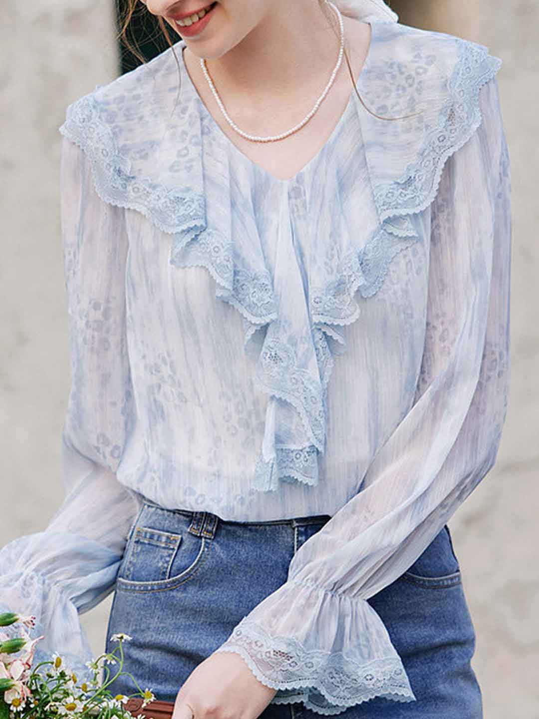 Mia Elegant V-Neck Ruffled Lace Blouse