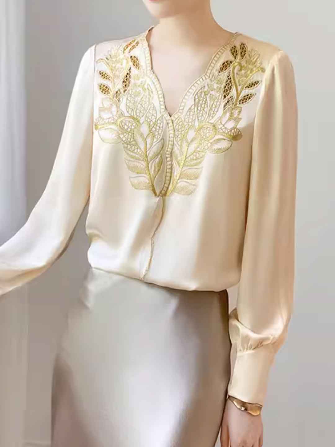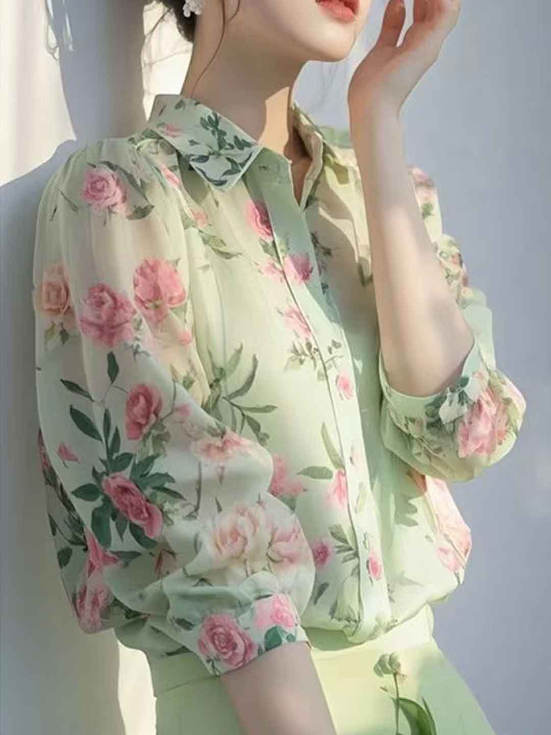 Grace Elegant Lapel Embroidered Shirt