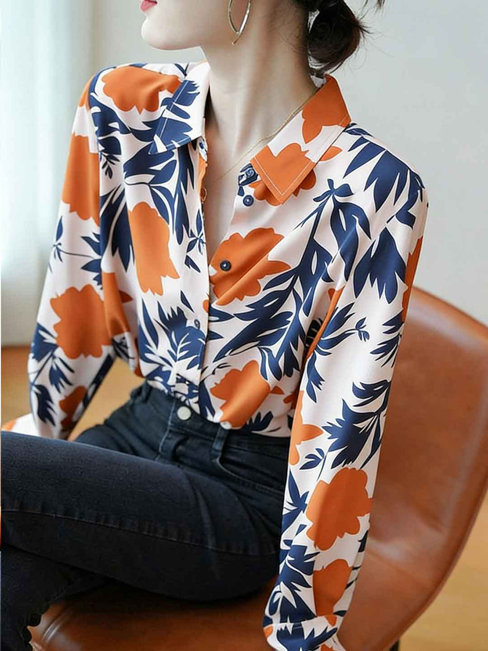 Vanessa Casual Lapel Printed Satin Shirt