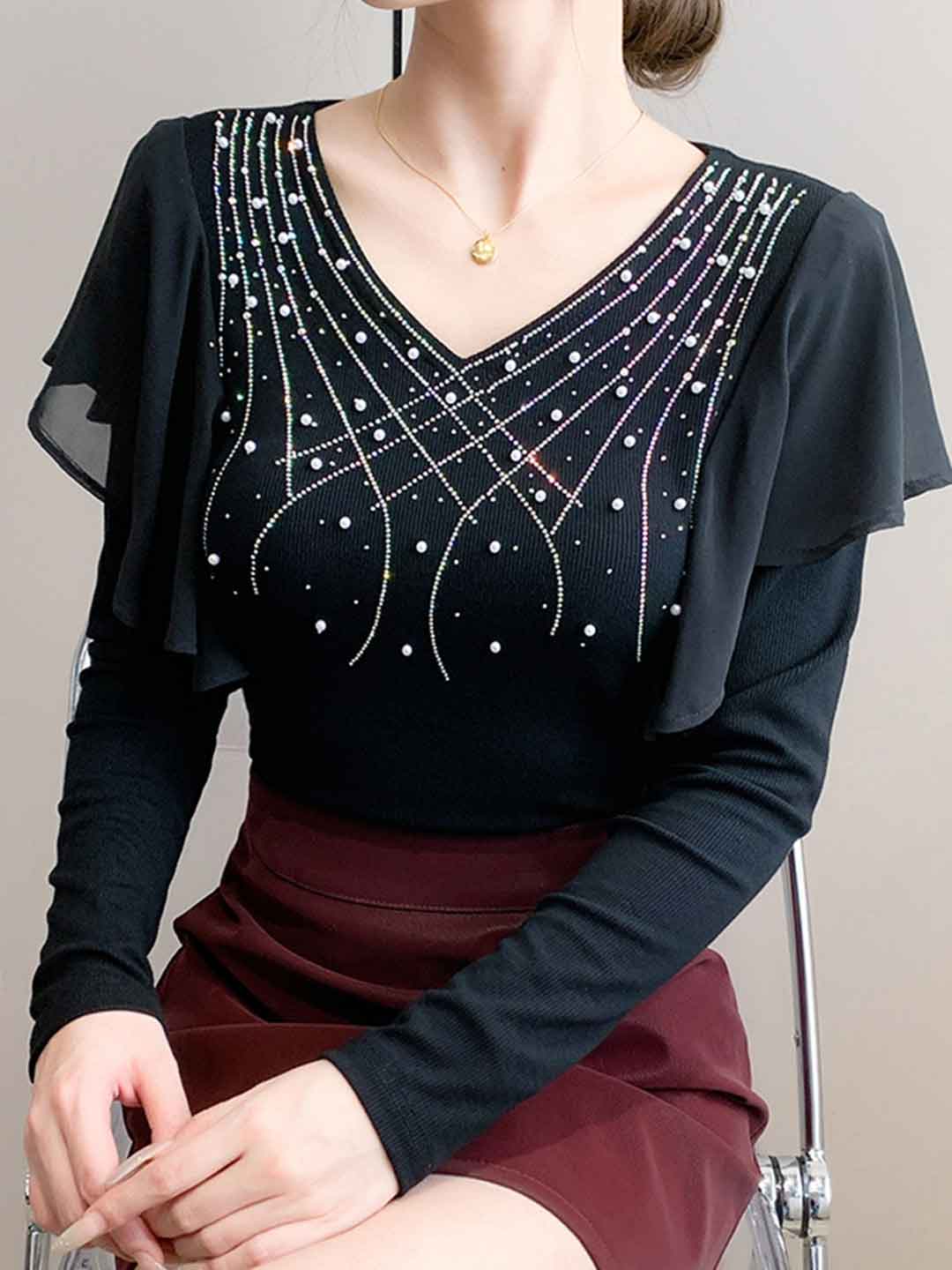 Savannah Slim V-Neck Rhinestone Top