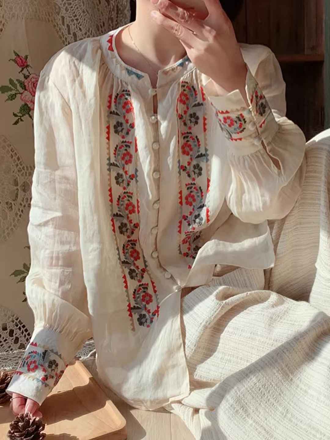 Natalie Vintage Auricular Embroidered Shirt