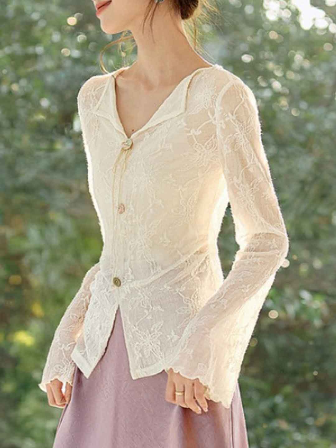 Emily Retro V-neck Auricular Lace Embroidered Top