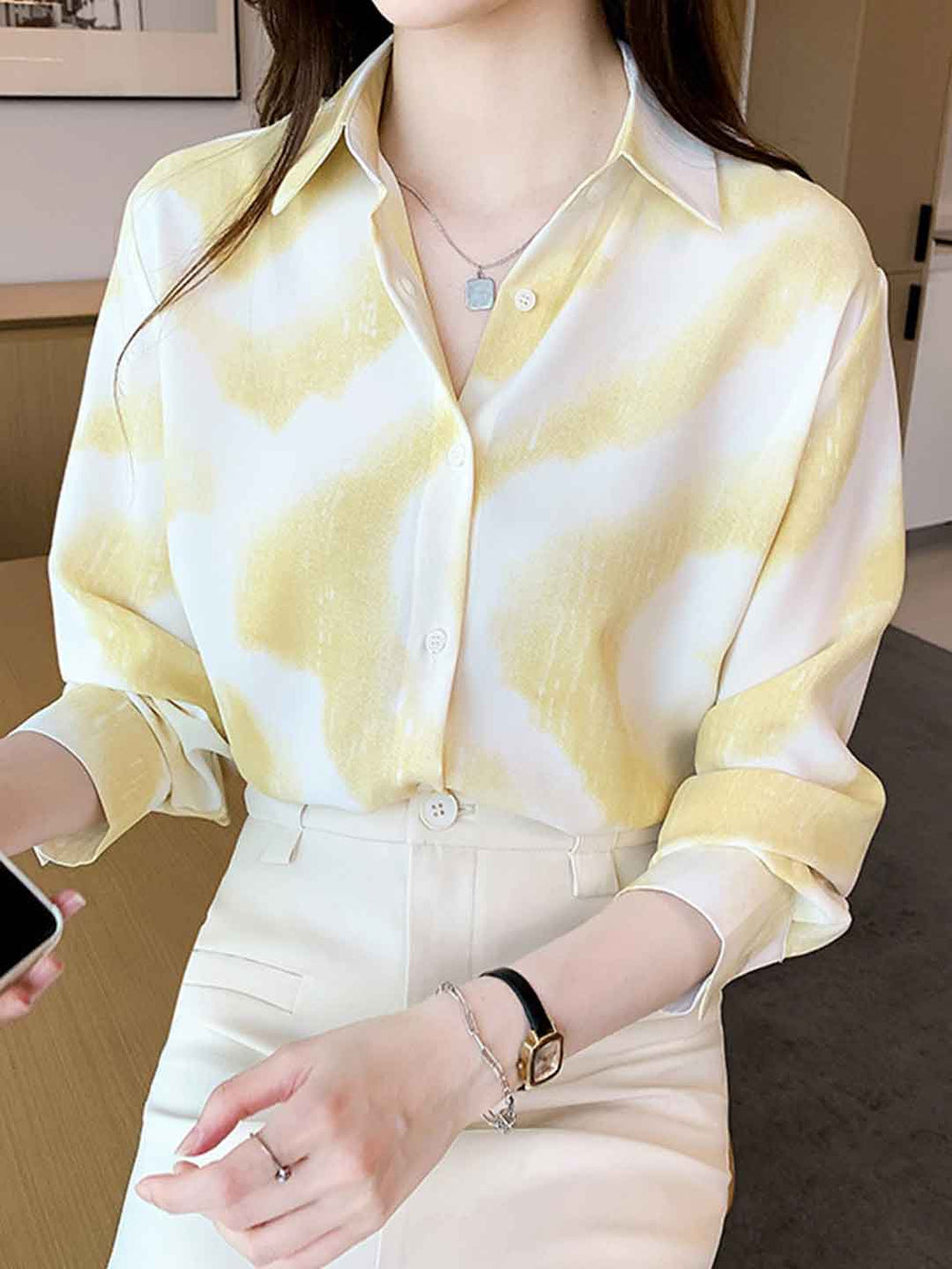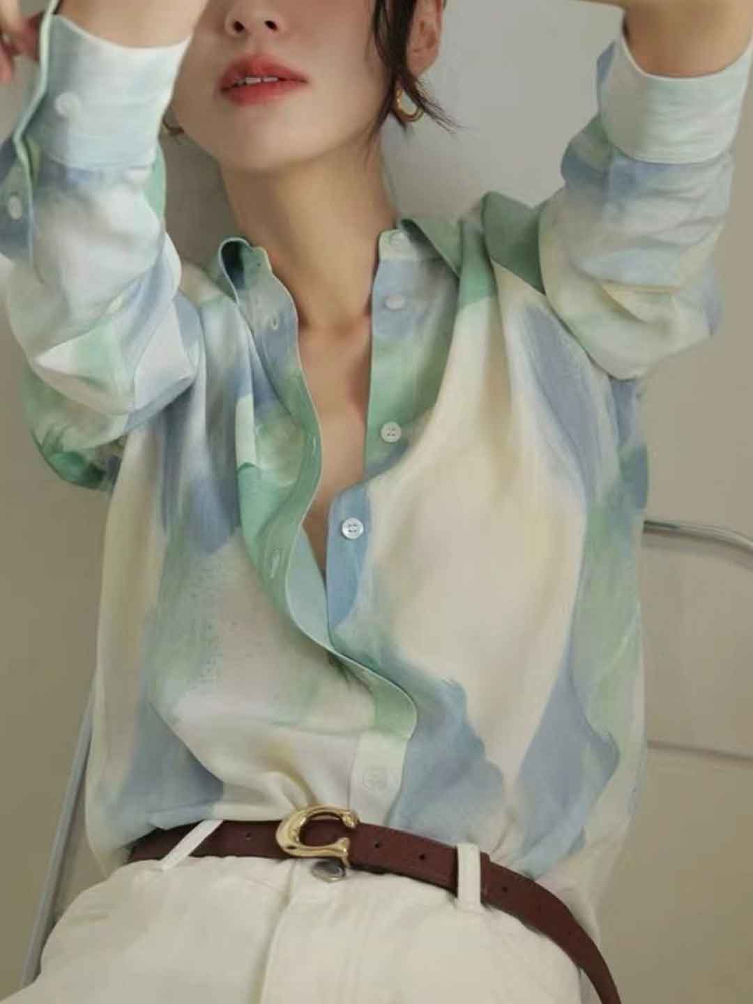 Evelyn Slim Lapel Printed Chiffon Shirt