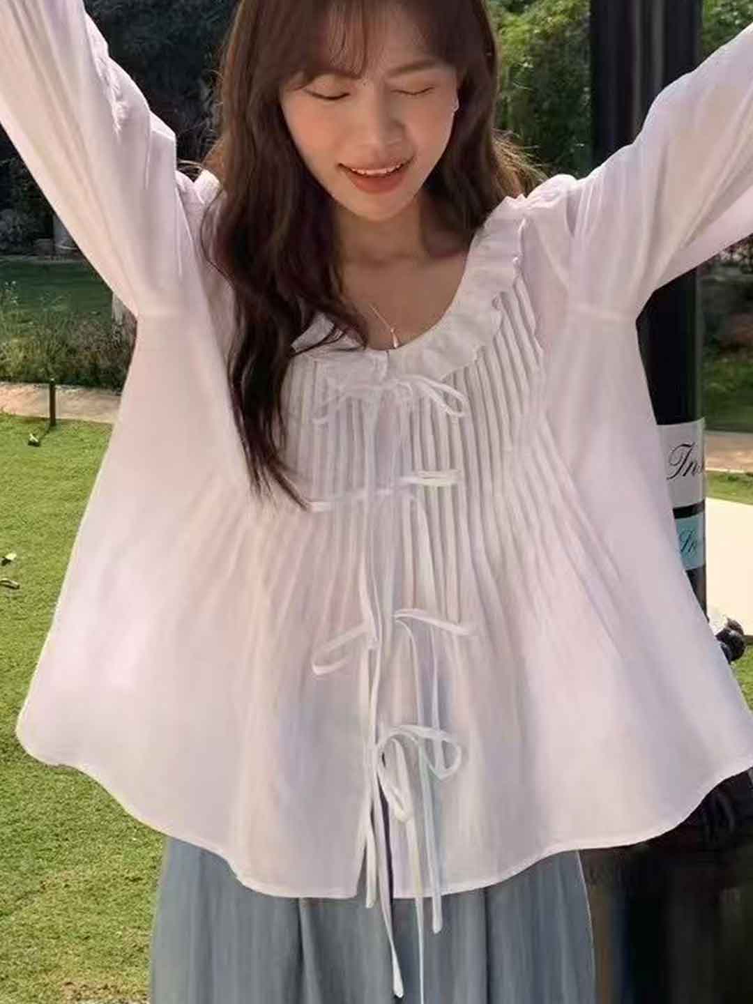 Emma Chic Doll Collar Ruffled Bow Top
