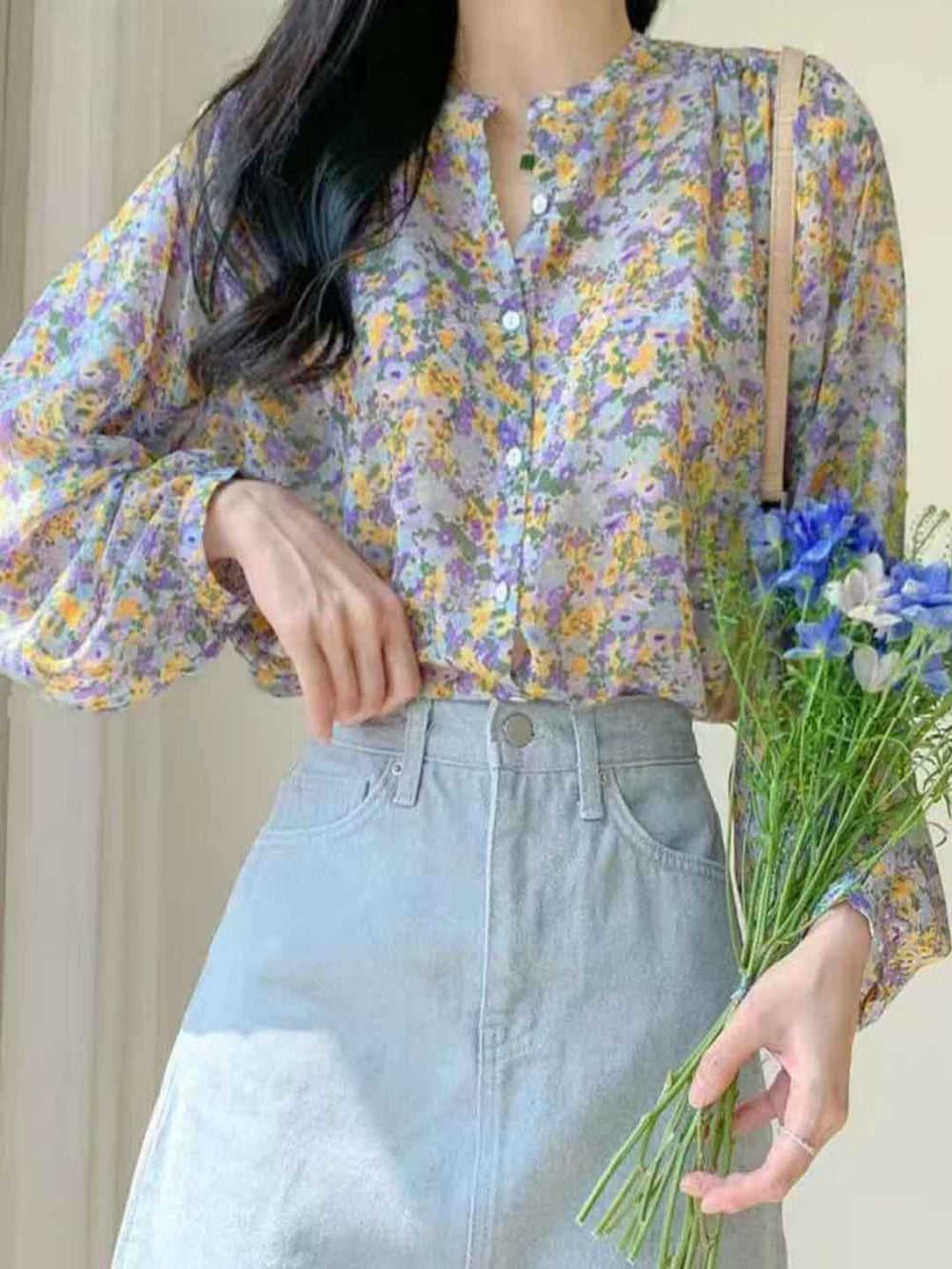 Kayla Loose Auricular Puff Sleeve Floral Top