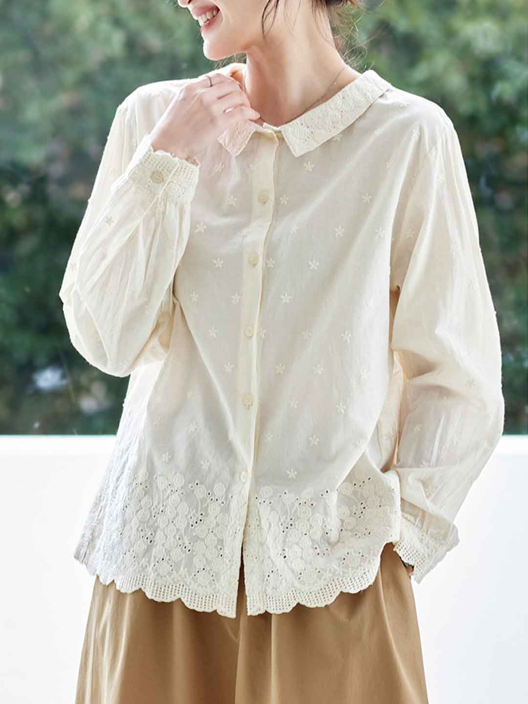 Emily Loose Doll Collar Embroidered Hollowed Top