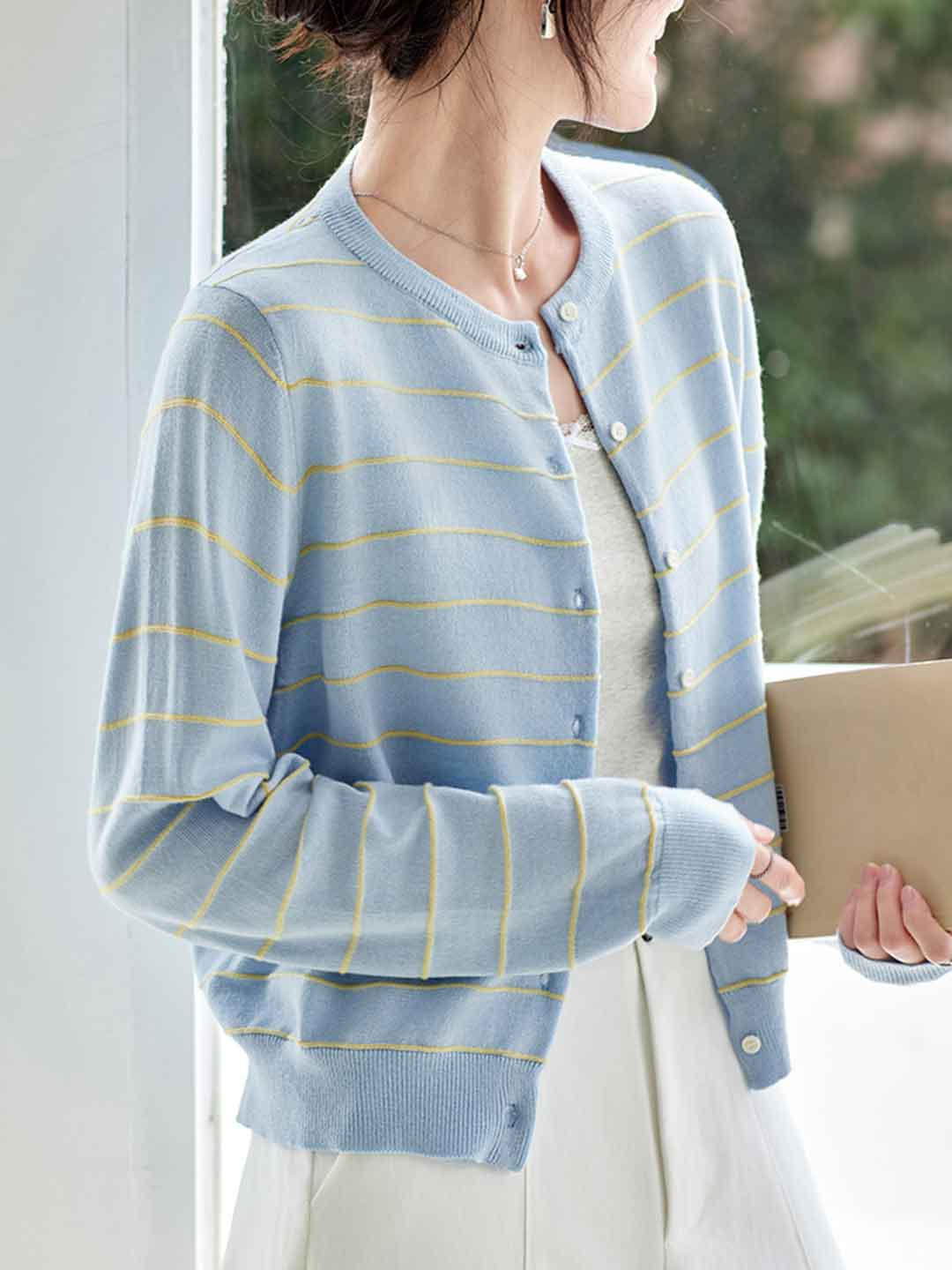 Abigail Classic Crew Neck Striped Knitted Cardigan