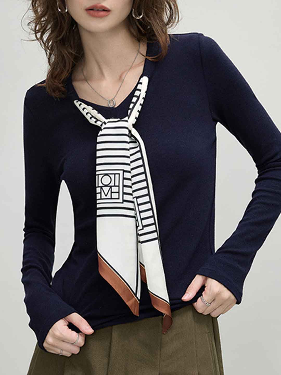 Rachel Slim Crew Neck Scarf Top