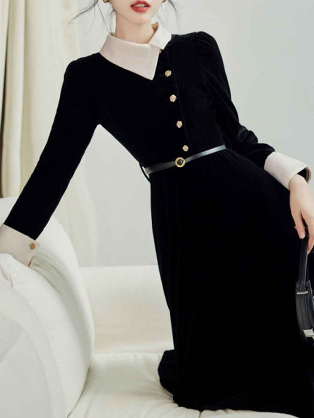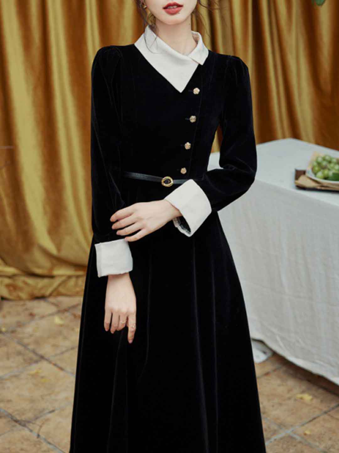 Lillian Retro V-Neck Velvet Embroidered Dress