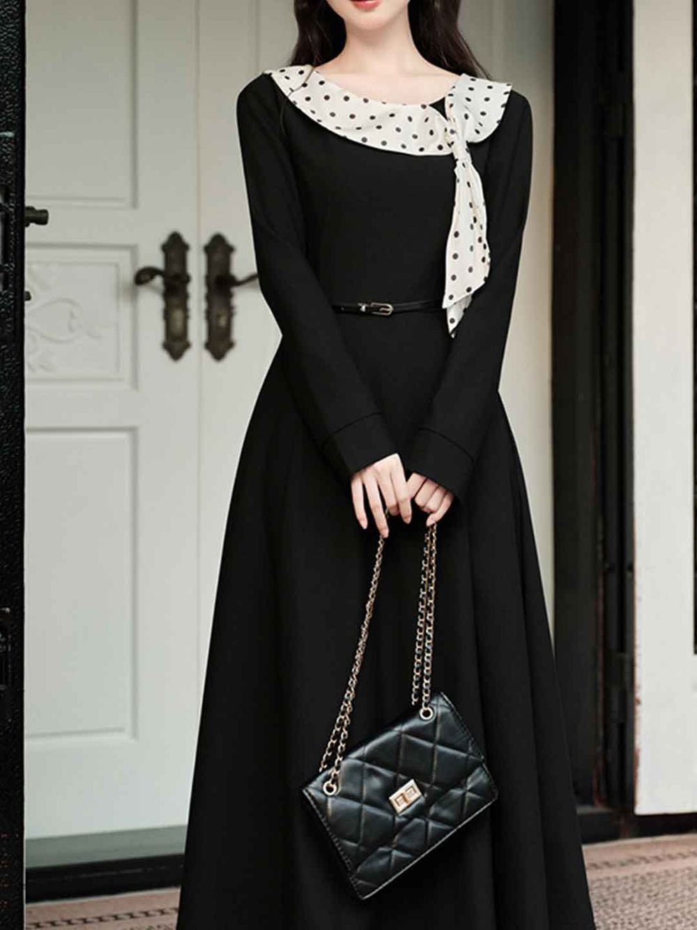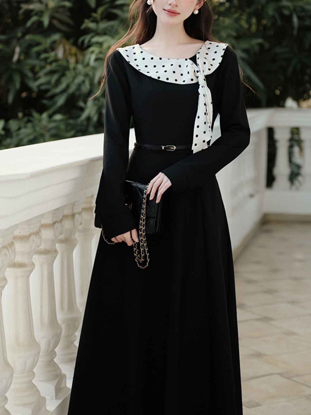 Gabriella Vintage Crew Neck Polka Dot Printed Dress