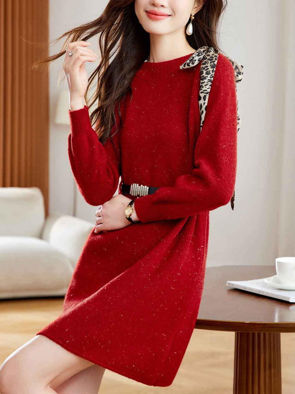 Taylor Casual Crew Neck Scarf Knitted Dress