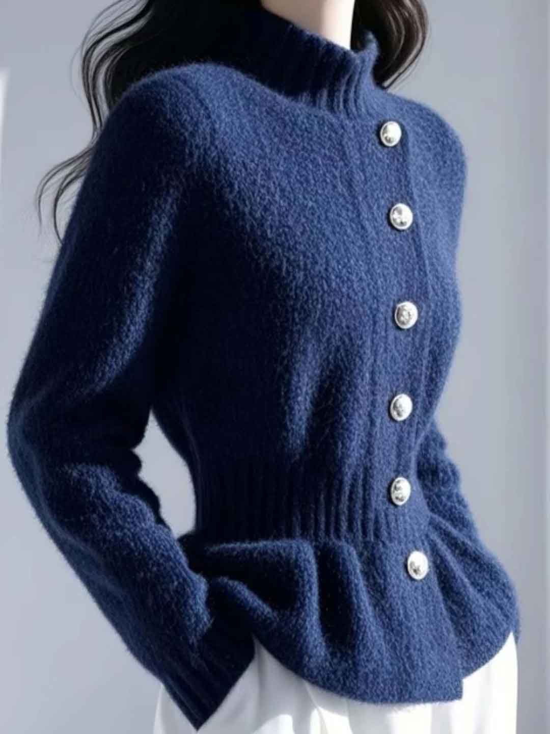 Madison Daily Stand Collar Solid Color Knitted Cardigan