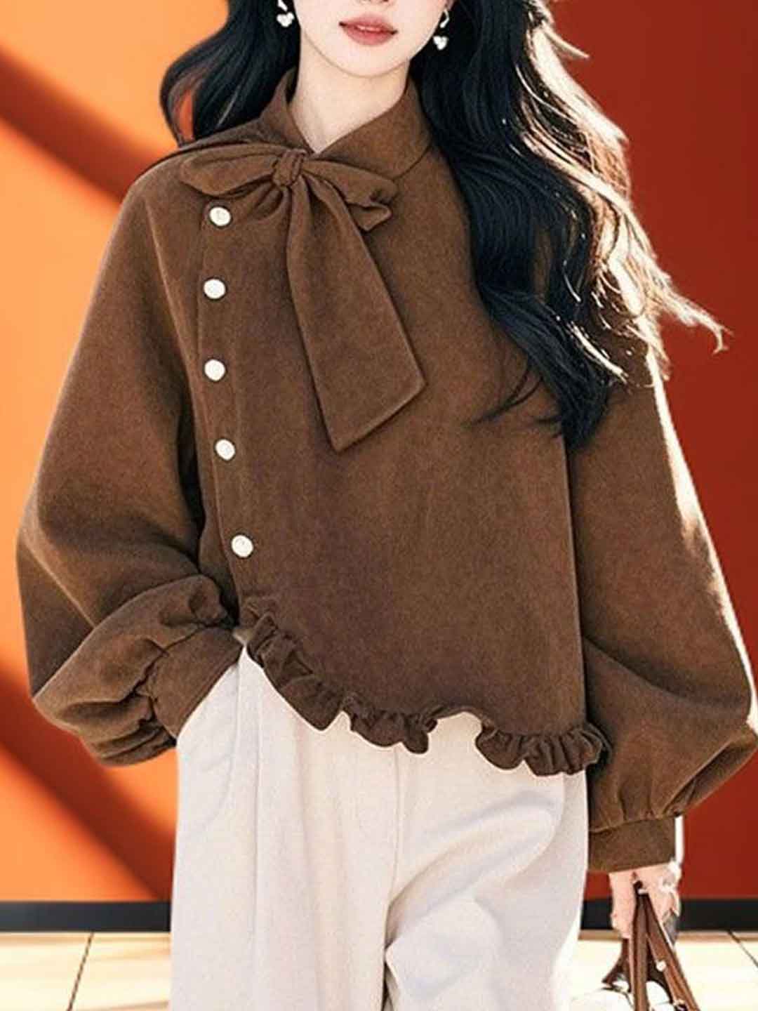 Olivia Loose Scarf Collar Lantern Sleeve Irregular Sweatshirt