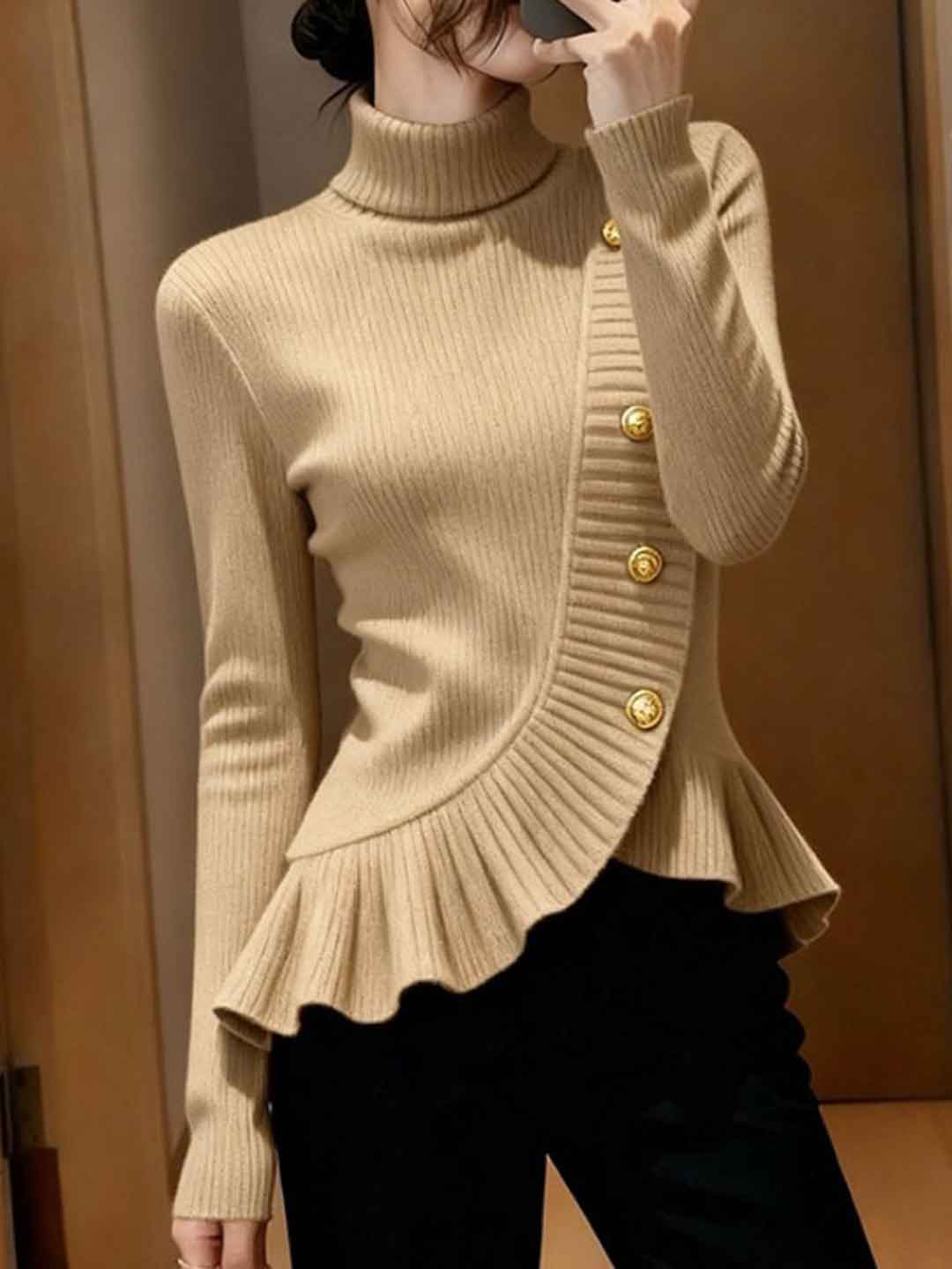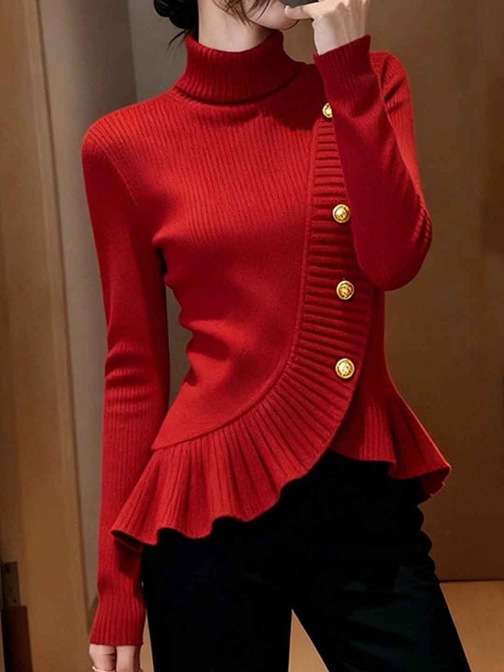 Abigail Classic Turtleneck Waisted Ruffled Knitted Sweater