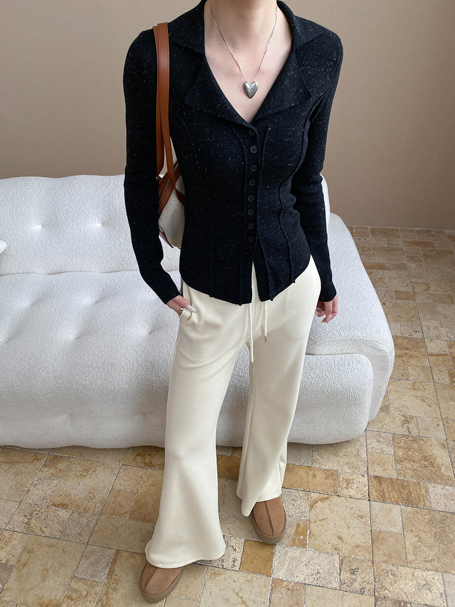Jessica Slim Lapel Solid Color Knitted Cardigan